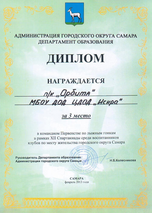 В соответствии с планом спортивно-массовых мероприятий Департамента образования на 2012-2013 учебный год, в целях пропаганды здорового образа жизни среди школьников городского округа Самара в период с 1 по 20 апреля 2013 года прошло Первенство по плаванию среди учащихся общеобразовательных учреждений городского округа Самара в рамках Всероссийских спортивных соревнований «Президентские спортивные игры». В мероприятии приняли участие педагоги, работающие по программе «Живу на Волге – умею плавать» (программу курирует Центр дополнительного образования «Искра»), и воспитанники школ города Самара.